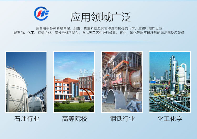 FCF不銹鋼升降反應釜 主要特點采用靜密封結構,攪拌器與電動傳動間采用磁力偶合器連接,由于其無接觸的傳遞力矩,以靜密封取代動密封,能徹底解決攪拌存在的匯漏問題,使整個介質和攪拌部件完全處于密封的狀態(tài)中進行工作,因此,更適合用于各種易燃、易爆劇毒、貴重介質及其它滲透力極強的化學介質進行攪拌反應,是石油、化工、有機合成、高分子材料聚合、食品等工藝中進行硫化、所氟化、氧化等到反應理想的無泄漏反應設備。